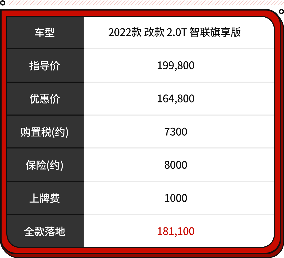 目前现款红旗HS5售价区间18.38-24.98万元,终端市场优惠3-4万元,加上补贴和购置税减半政策,入门款车型落地不到17万元,而最走量的2022款 改款 2.0T 智联旗享版全款落地也仅在18.1万元左右,性价比极高,教授也比较推荐该配置。