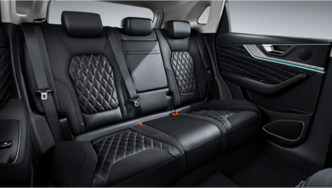 配置方面,推荐车型标配了6安全气囊、并线辅助、主动刹车、360度全景影像、倒车车侧预警、定速巡航、五种驾驶模式、可开启全景天窗、电动后备箱、后备箱位置记忆、前排无钥匙进入、12.3英寸全液晶仪表盘、HUD抬头显示、主副电动座椅、座椅加热/通风、12扬声器BOSE音响、远近LED大灯、253色车内环境氛围灯、外后视镜电动折叠以及后排空调出风口等配置。