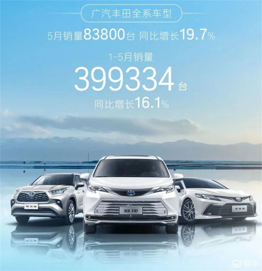 迈入6月初,从各大主流汽车品牌纷纷公布的5月销量数据来看,广汽丰田以单月成交量合计斩获83800辆,同比增长19.7%,成为唯一销量正增长的合资品牌;而全系车型1-5月累计销量达到399334台,同比增长16.1%,在销售淡季还能获得如此优秀成绩确实令人大吃一惊。