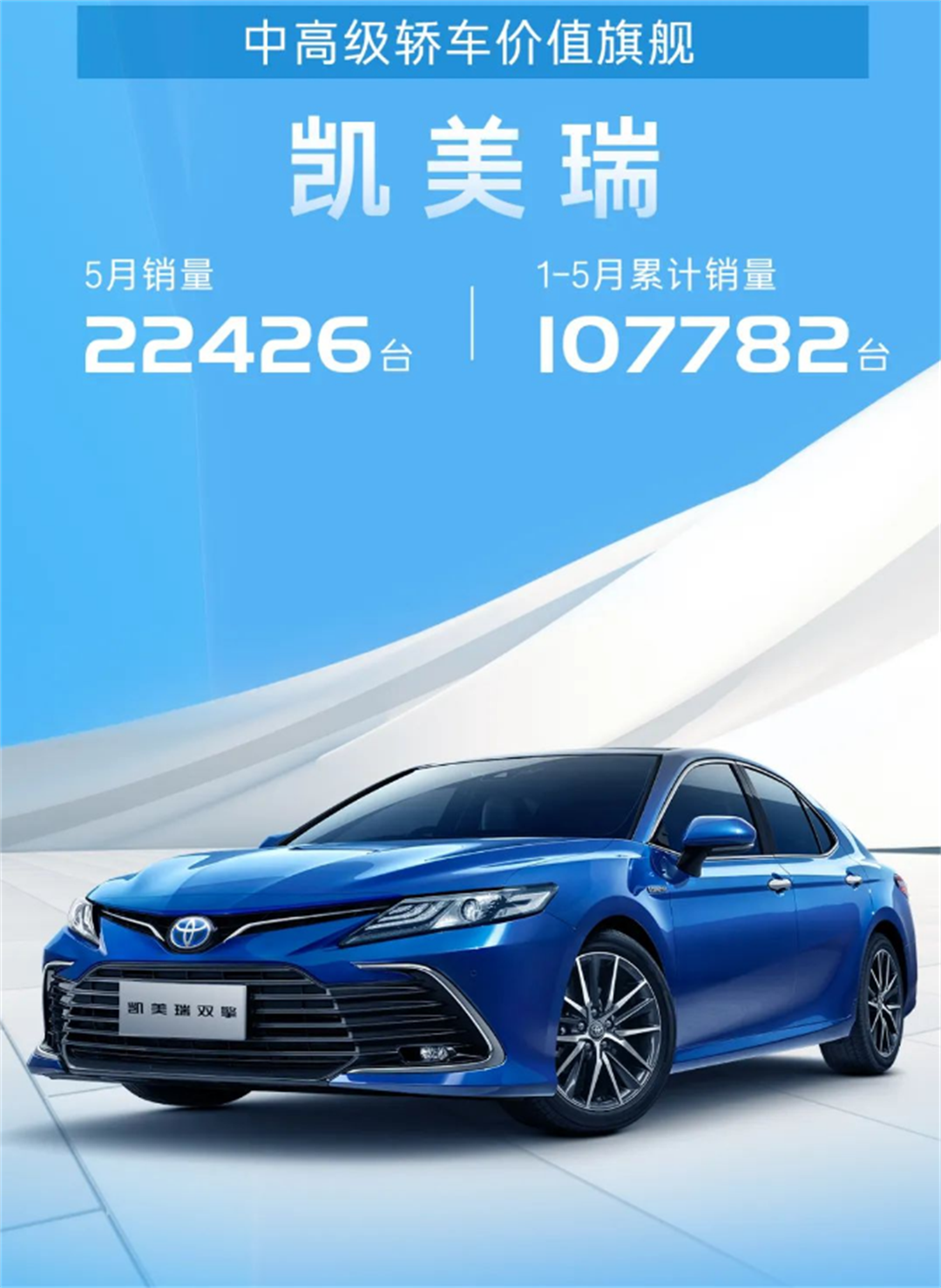 根据广汽丰田所发布的数据显示, 以凯美瑞为首的轿车阵容,在2022年1-5月份累计销量达到107782台,占据广汽丰田全系车型销量的27%,成为该品牌销量最高的“头号功臣”,在B级家用轿车市场排行榜上位居前列实属不易。
