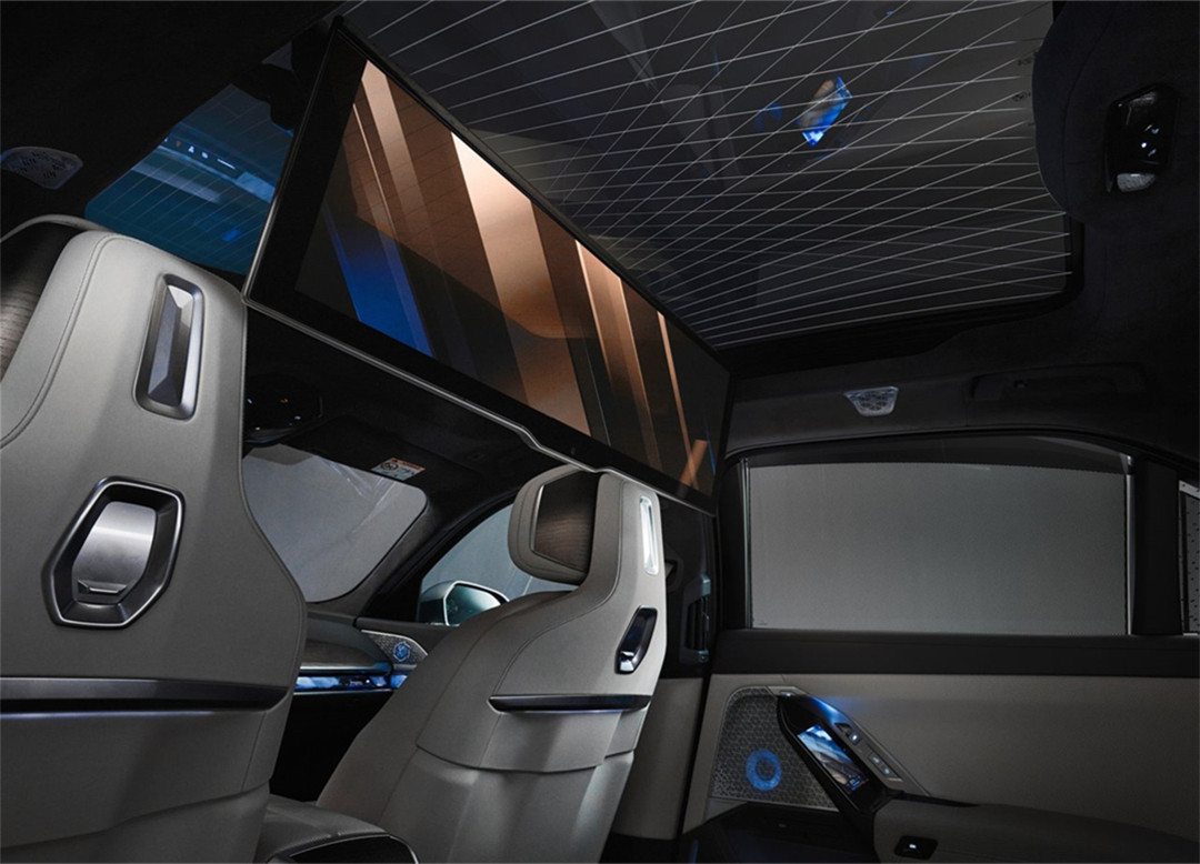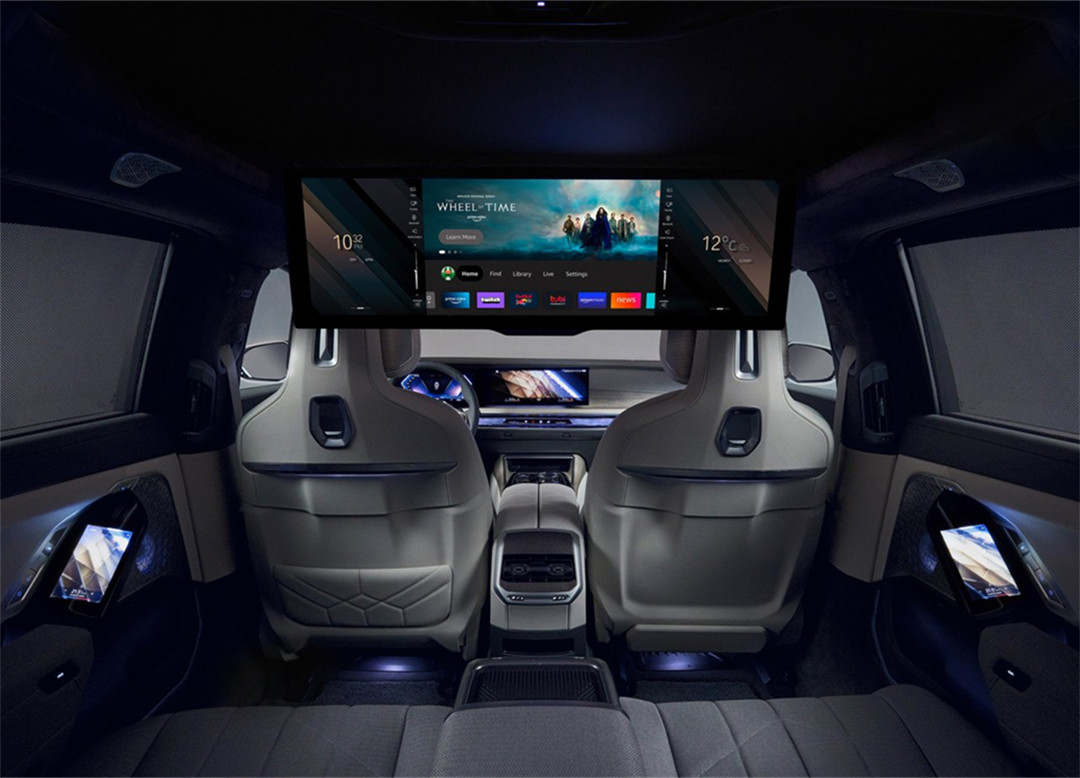 比如刚才提到的EVOS,中控台就放了一整块12.3英寸+27英寸4K、长达1.1米的屏幕,再次让人第一眼看到都会怀疑它是不是一台电车。