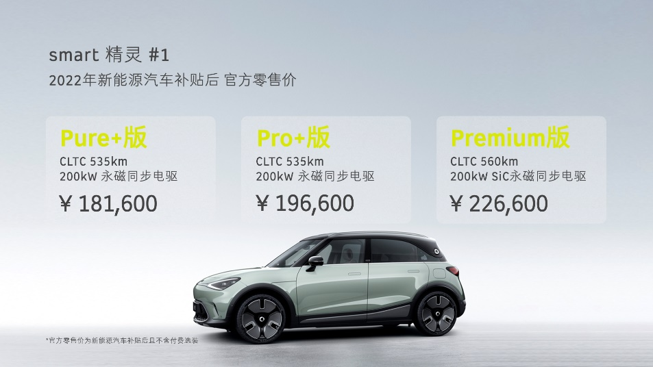 全新smart精灵#1三款配置车型官方零售价正式公布