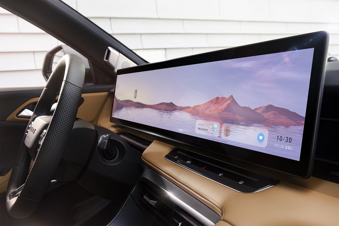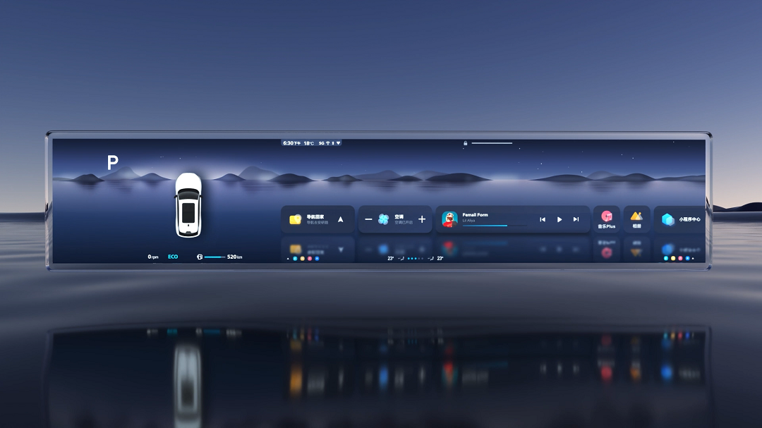 27英寸液晶屏幕对于东方美学的座舱氛围呈现上,给出了山水UI视觉主题的答案。营造一幅又一幅山水意境的画幕,相信教授,坐进车内甚似有一番亲临世外桃源的意境。