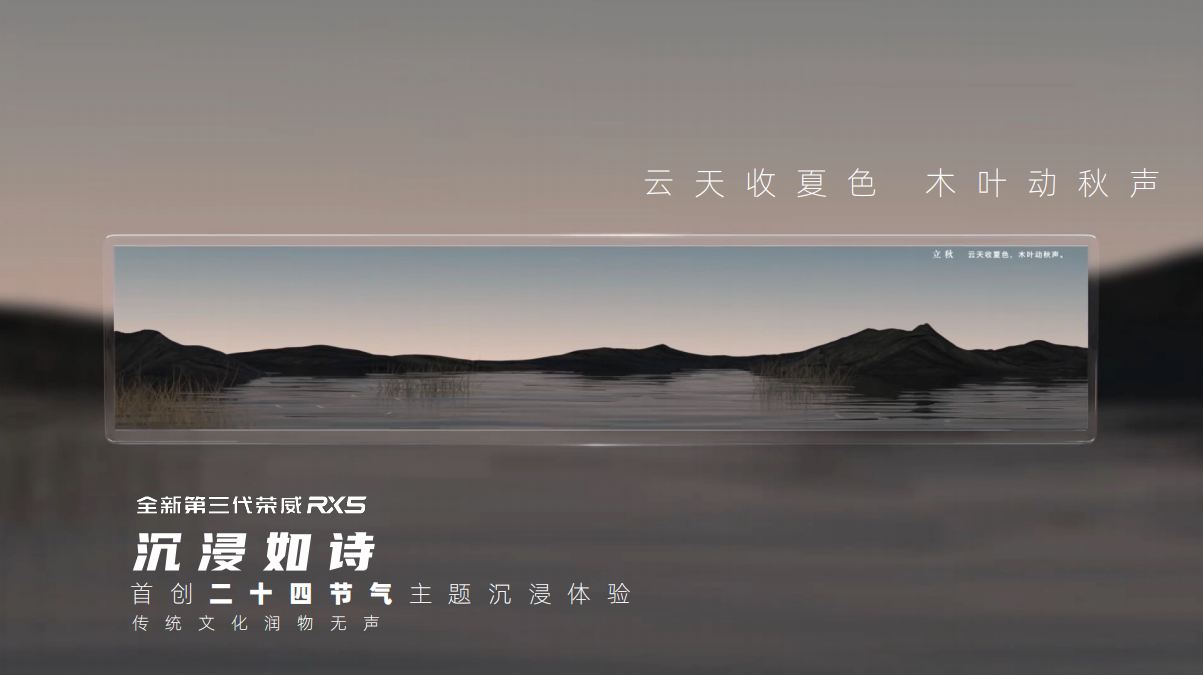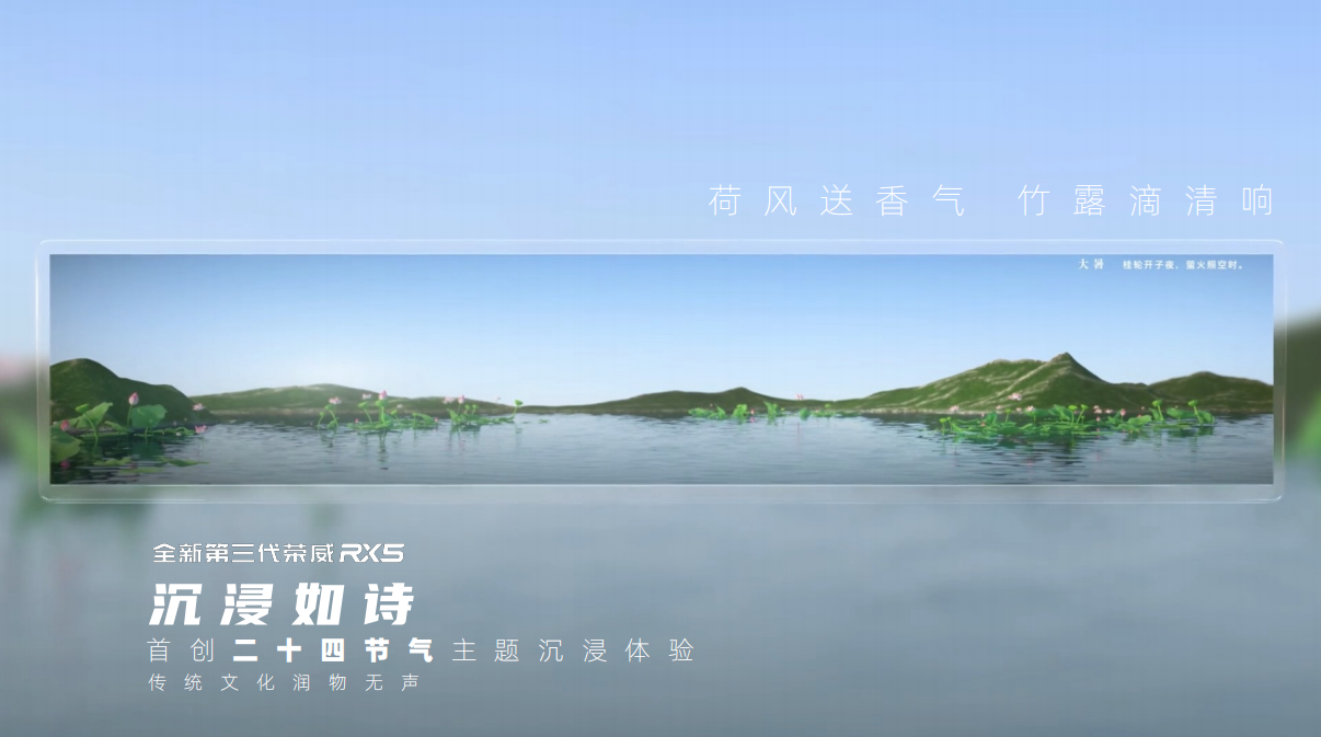 另外,全新第三代荣威RX5首创24节气沉浸模式。在沉浸模式下,以古诗词为画笔,从听觉出发,带你还原不同节气的山水美景。躺在座舱休息片刻,享受不同节气的意境,来一场“说走就走”的古文化穿越之旅也不失为一番享受。