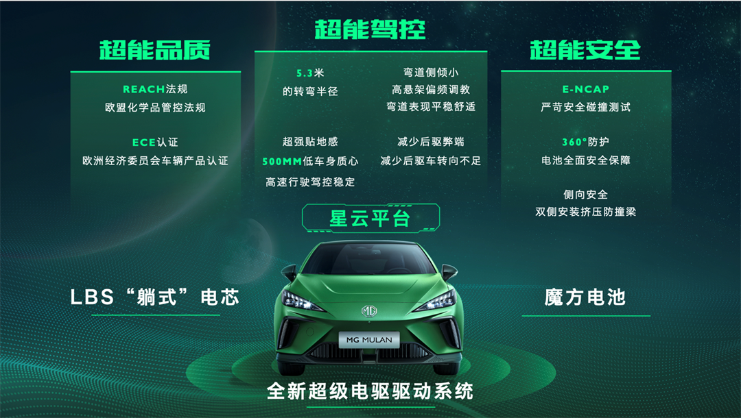值得一提的是,MG MULAN还搭载“零热失控”防护体系,符合当前欧洲五星安全标准设计,采用了三重防撞梁设计、CPM电容应用等。同时也对电池组的保护也进行了多重升级,增加整车的安全性。
