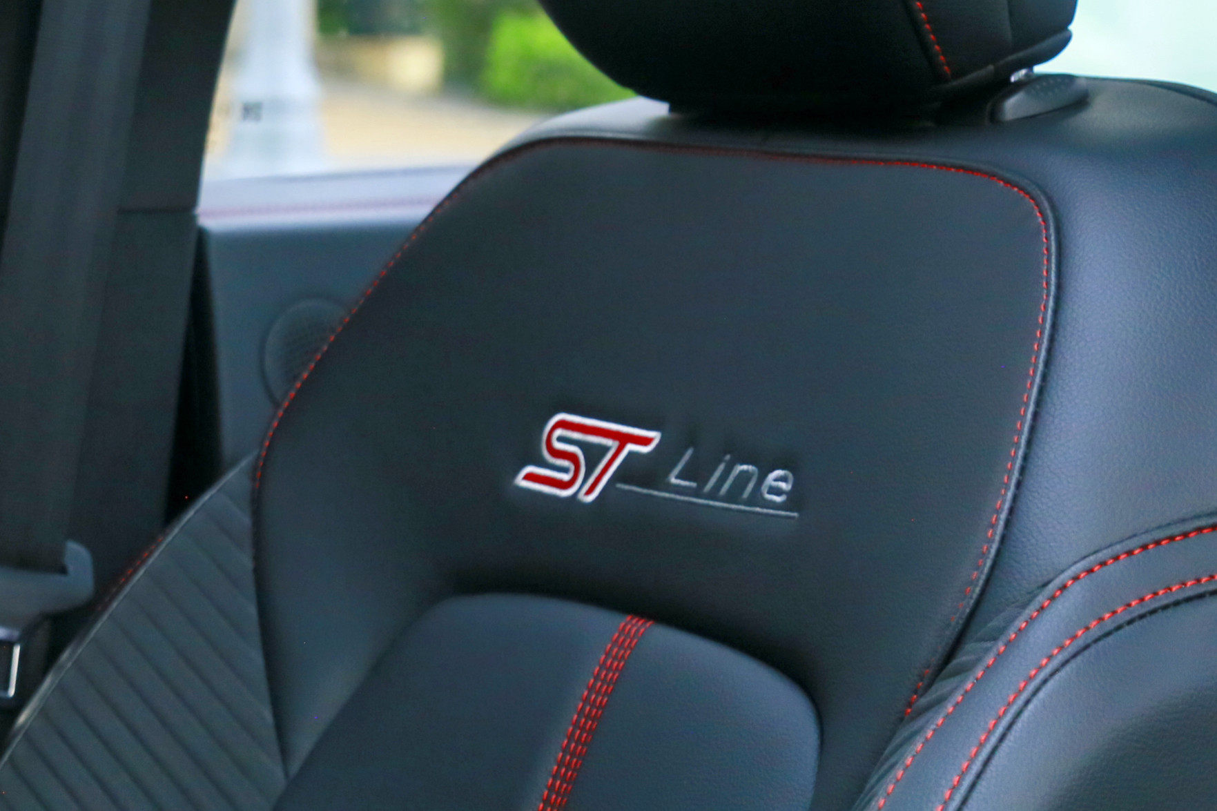 座舱部分以黑色为主基调,细节通过诸多红色缝线处理很好地诠释了“性能小钢炮”的定义。运动版车型在一体式运动座椅处,配有专属的“ST-Line”刺绣LOGO,表现出其与众不同的运动身份。