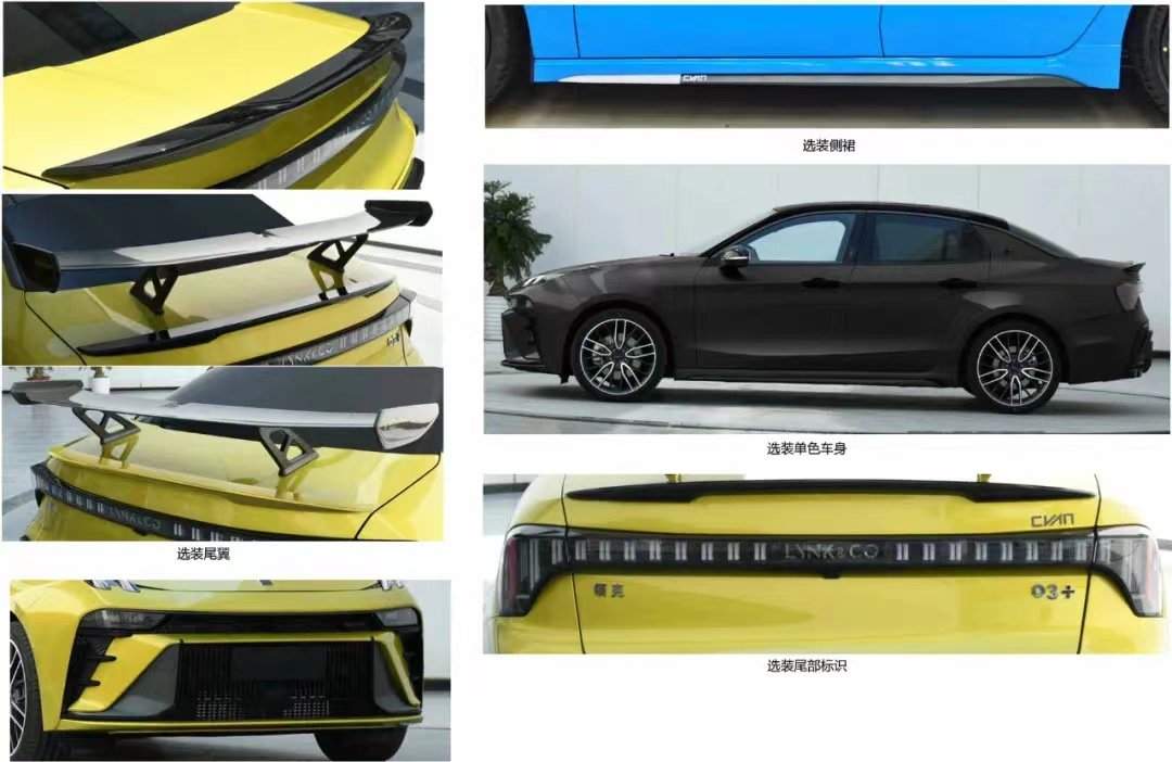 此外,新款领克03+还提供了带有Cyan赛车外观套件,其中包括赛车风格的大尾翼、黄色涂装四活塞制动卡钳,以及在侧裙等细节部分加入Cycan的赛车标识,更显档次感。与此同时,新款领克03+还提供单色车身选装,这意味新车不再仅局限于炫燃金一种车身配置,给消费者更多个性化选择。