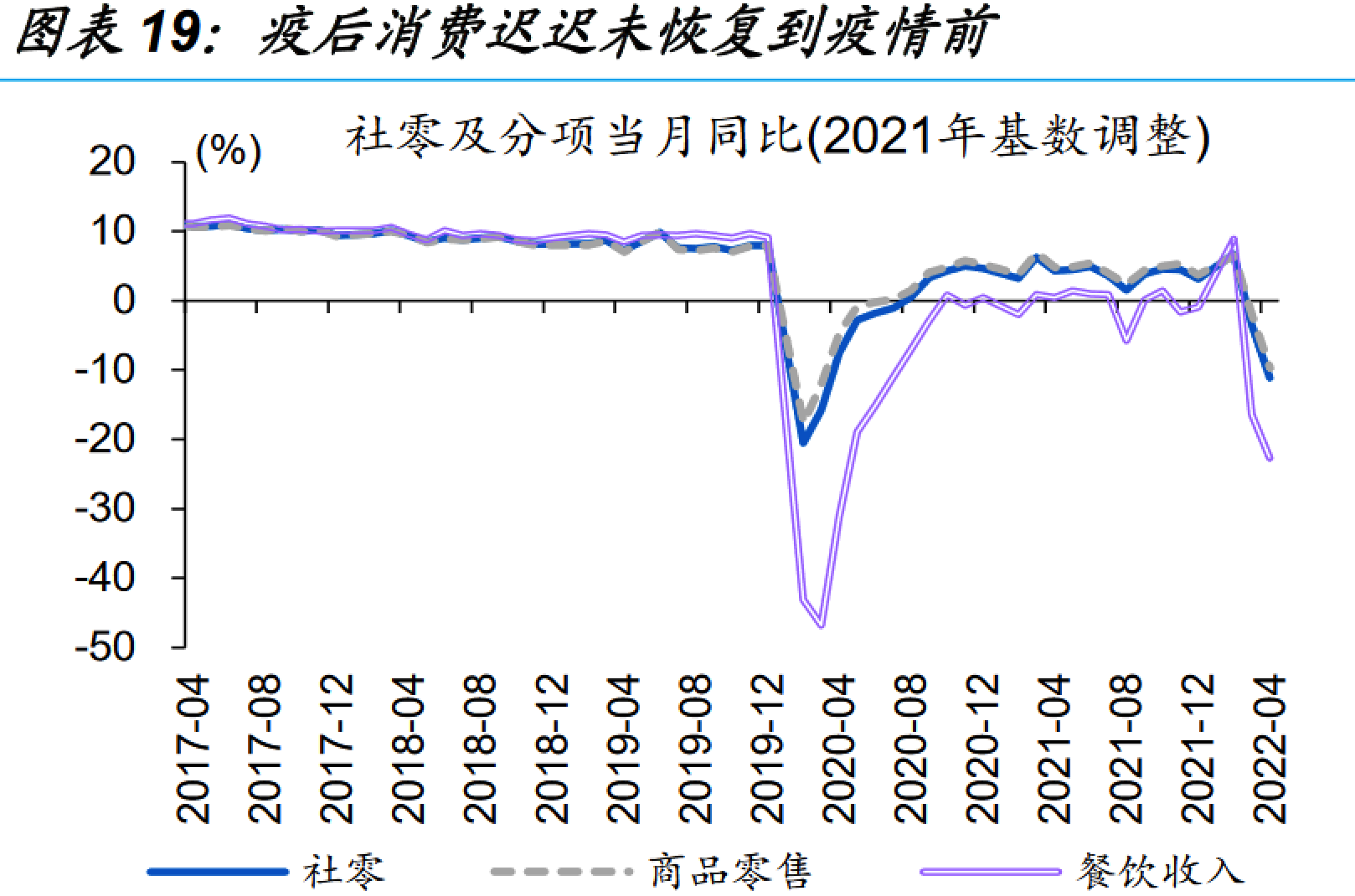 先从国内来看,出于对疫情防控常态化的影响,大家认为未来收入容易出现不稳定,消费信心难免受到了打击,同时未来收入预期又关乎财富效应和职业稳定,其中在“房住不炒”、“三条红线”、娱乐圈税务整改、教育界“双减”、互联网反垄断等政策下,确实对民营企业造成不小影响,也间接冲击了就业市场。