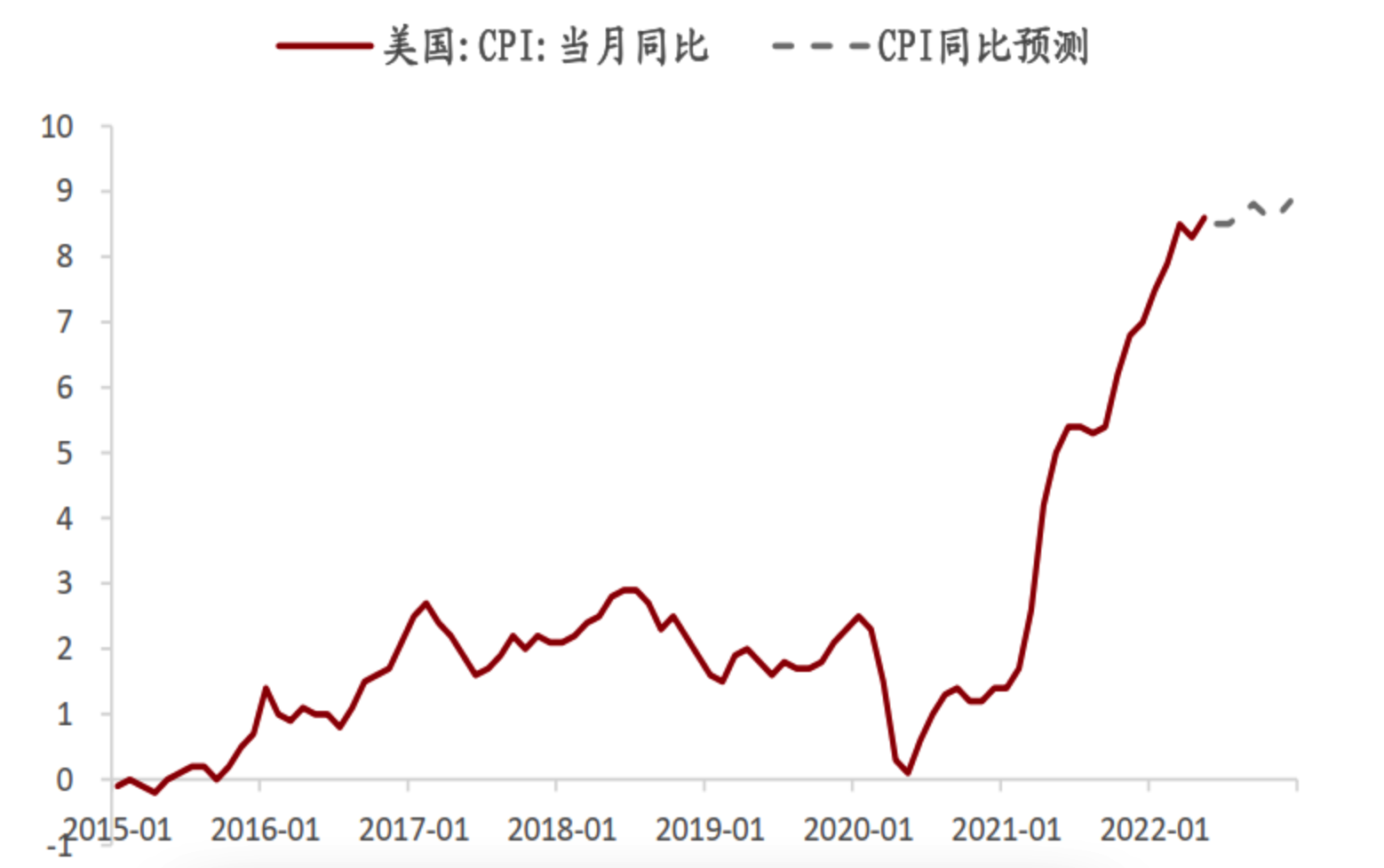 在前期疫情中断劳工链,全球原材料产能收缩乃至俄乌冲突后,多重因素下冲击了供应端,同时在财政部发钱刺激居民需求以后,近两年来美国CPI指数持续高涨,直到最近达到了40多年以来的最高值。