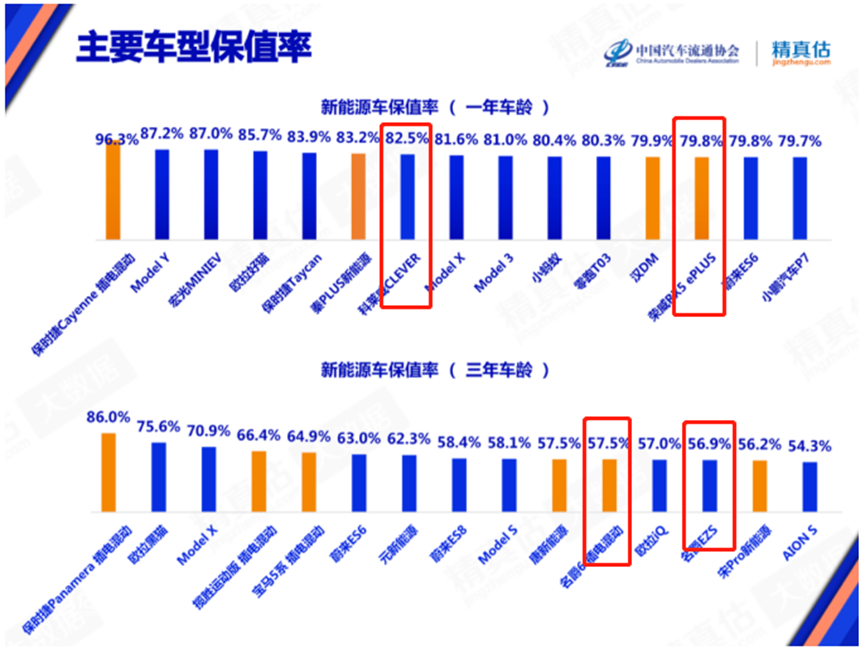 此次新能源车保值率榜单中,上汽乘用车旗下四款车型再度入围。在新能源车1年保值率榜单中,插电混动SUV荣威RX5 ePLUS、微型纯电动车科莱威CLEVER排名较上月均上升一位。科莱威CLEVER以82.5%的保值率升至整体榜单第七位。值得注意的是,荣威RX5 ePLUS不仅拥有3.0T绿色澎湃动力,同时还配备专业级SUV底盘调校以及超高强度钢结构笼式车身,在美学、智联、舒享、健康方面也表现出同级最高水准,是高品质插电混动SUV的不二之选,上市后广受用户的认可和赞誉,更以79.8%的高保值率,一举超越蔚来ES6并成功领跑自主品牌新能源SUV车型;此外,在新能源车3年保值率榜单中,第三代MG6 PHEV和纯电SUV MG EZS则是稳扎稳打,在TOP榜单中站住脚跟。