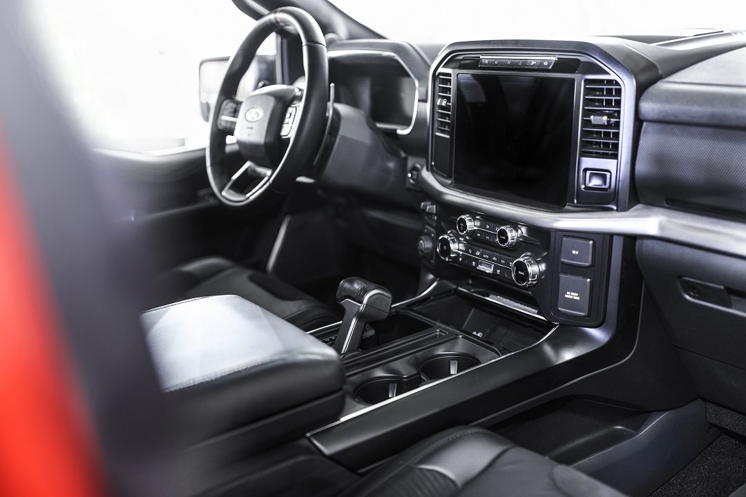 全新F-150猛禽在座舱的设计布局上依旧延续浓厚的家族式设计风格,可能在F-150猛禽它自己看来。最原始的设计布局才能够最大限度的保留它独有的氛围感。不过F-150猛禽在座舱的设计上也懂得向智能方向进化,去迎合当下消费受众的需求喜好。