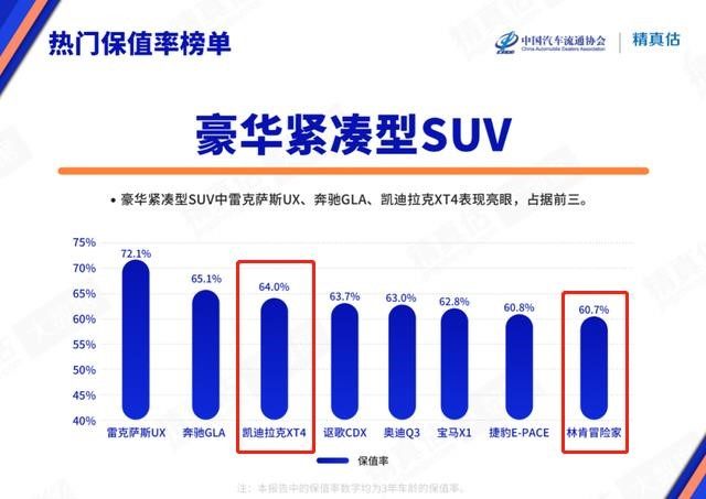 全面表现,加之出色质量,也让凯迪拉克XT4在市场上有着不错的保值率,根据中国汽车流通协会公布的2022年3月保值率报告来看,凯迪拉克XT4保值率位列豪华紧凑级SUV细分市场第三名,相较之下,林肯冒险家位列第八名。