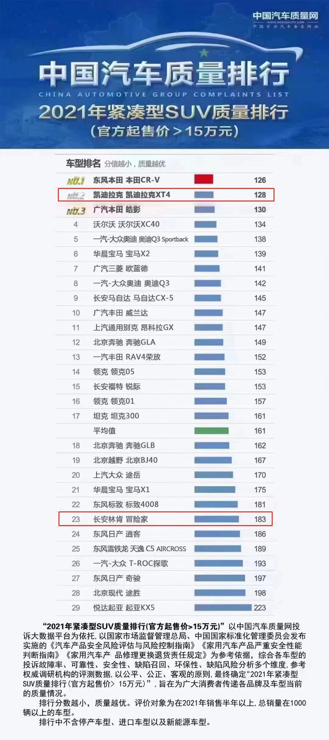 从排行榜中我们可以看到,新款凯迪拉克XT4名列总榜第二名,也是排名最好的豪华品牌车型,与之相对应的林肯冒险家则在总排名第23名的位置,差距十分明显。由此看来,小冰的直觉神准!