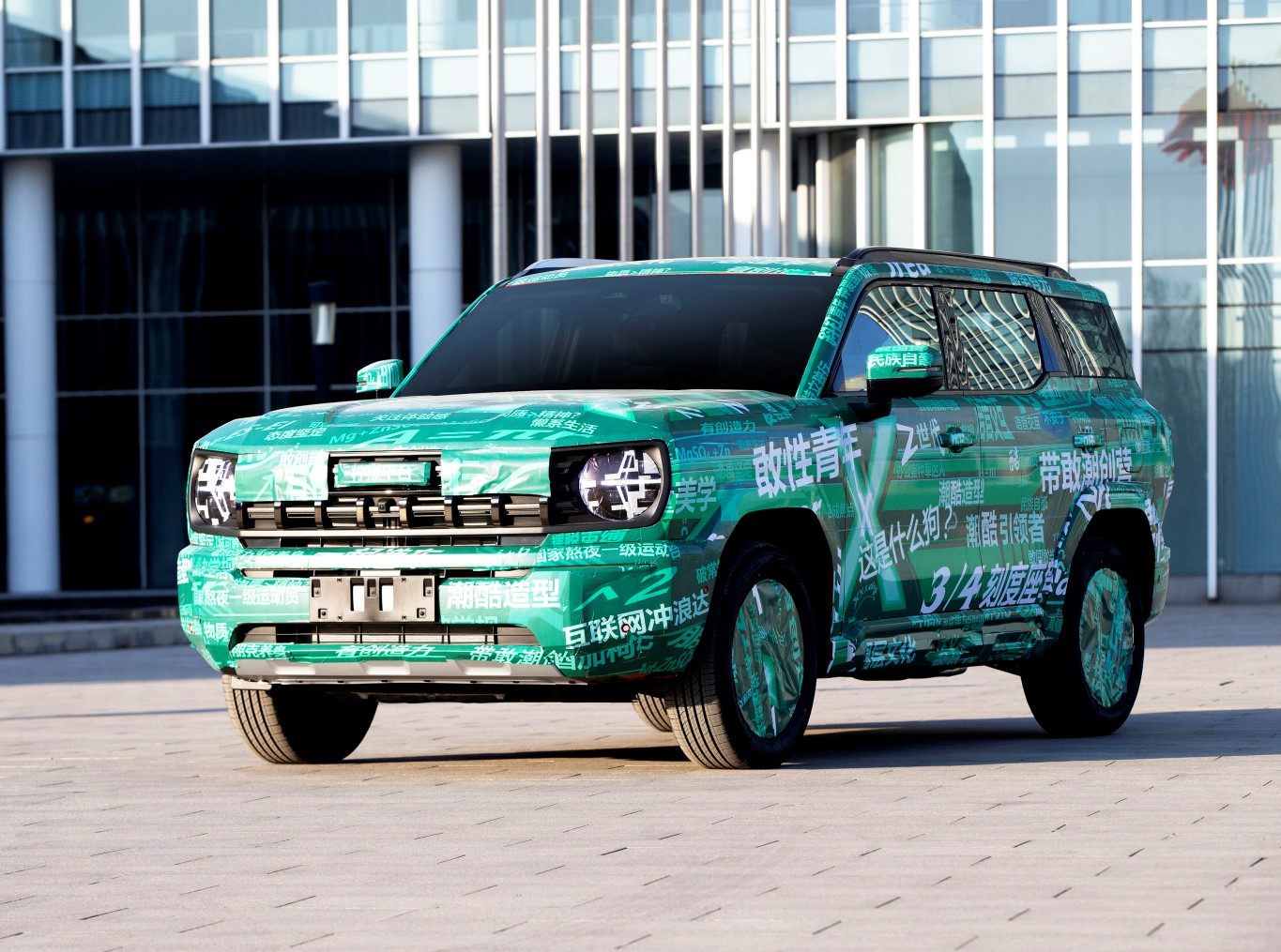 酷狗的越野性能上也不会太差,虽然可能不会采用带大梁的非承载车身,但从图片中也能看出,酷狗的前后悬长度较短,接近离去角的数据会较为优秀,加上尺寸不小的轮拱和轮胎,底盘离地高度十分可观,越野性能还是有一定保障的。