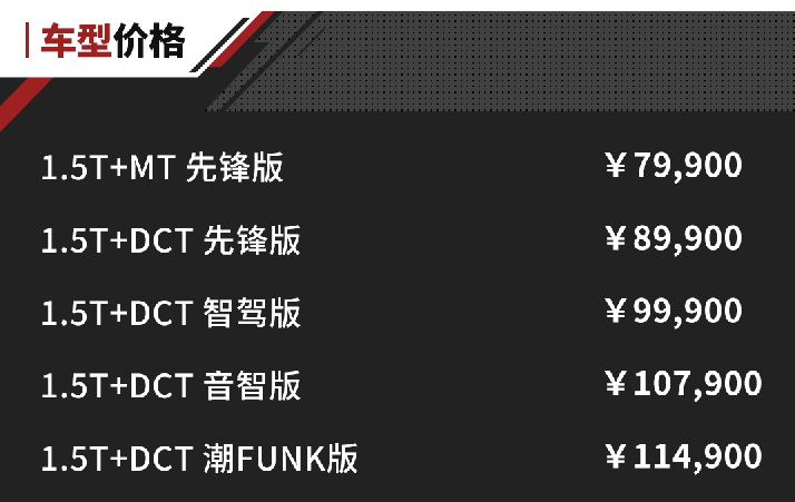 4.全系搭载 1.5T 发动机,最大功率 110KW