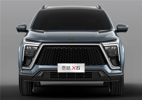 从外观来看,思皓X6前脸采用大尺寸进气格栅,内部使用网状元素点缀,两侧搭配垂翼式LED日间行车灯加矩阵式LED大灯,前脸视觉颇有蔚来ES8的“既视感”。