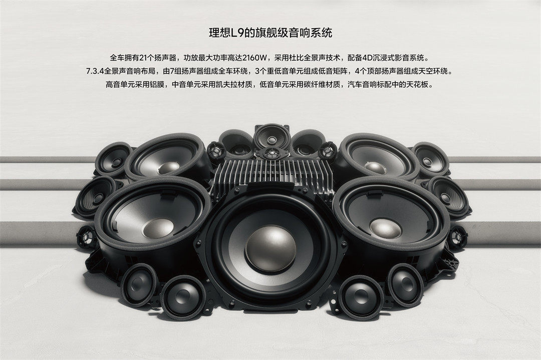 L9全车共有21个扬声器,由美国上声电子提供,它也是大众等品牌的供货商。