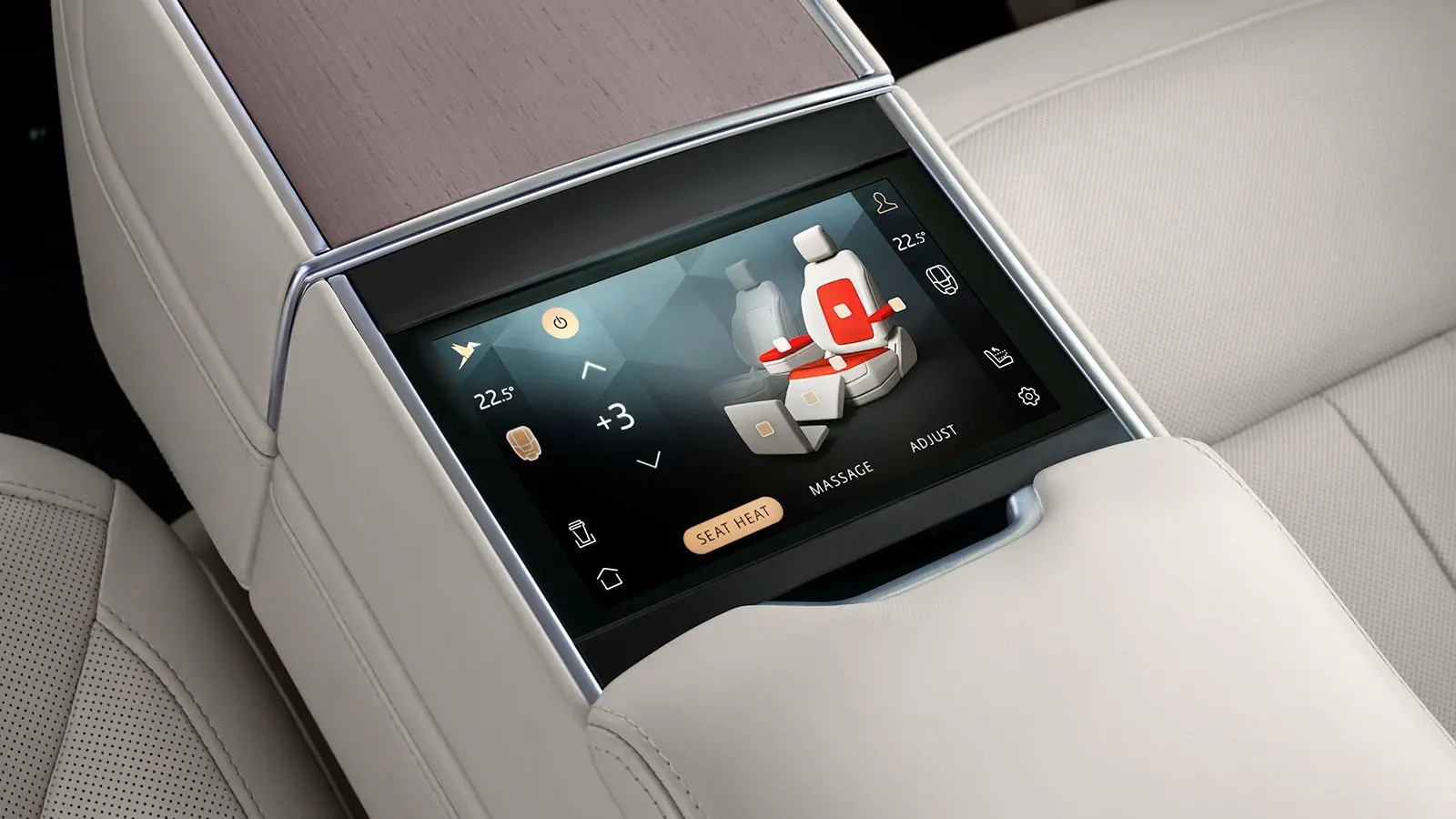 盛世版(标准轴距版)虽然是定位入门级车型,但内饰用料和配置一点也掉色。配备20向调节功能的前排座椅和前后排加热座椅,并通过黑檀木色豪华温莎打孔真皮包裹,强化豪华内饰氛围。