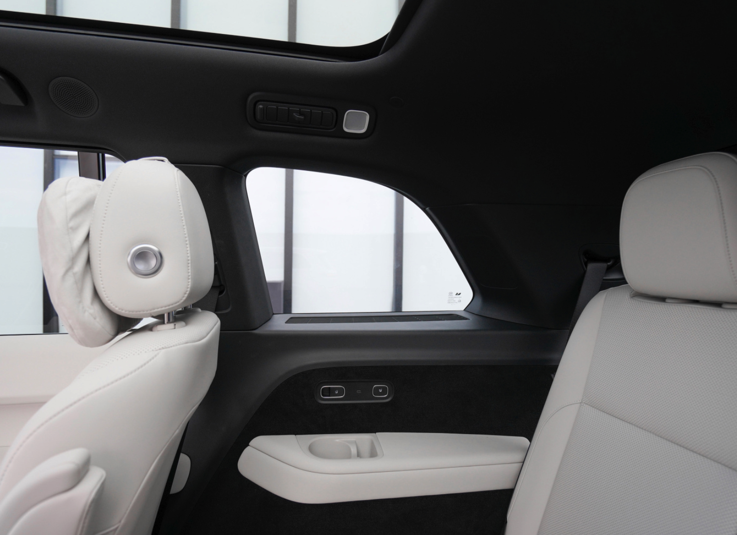 再者,理想L9也足够考虑到了第三排用户的乘坐感受,其中第三排座椅同样配备电动调节靠背和加热功能,均提供ISOFIX安全座椅接口,且头顶位置有空调出风口,座椅两边都有放水杯的空间,其中扶手位置还是用皮质包裹,加上侧窗面积足够大,更容易增加开扬感,可见理想L9第三排的细节营造确实贴心。