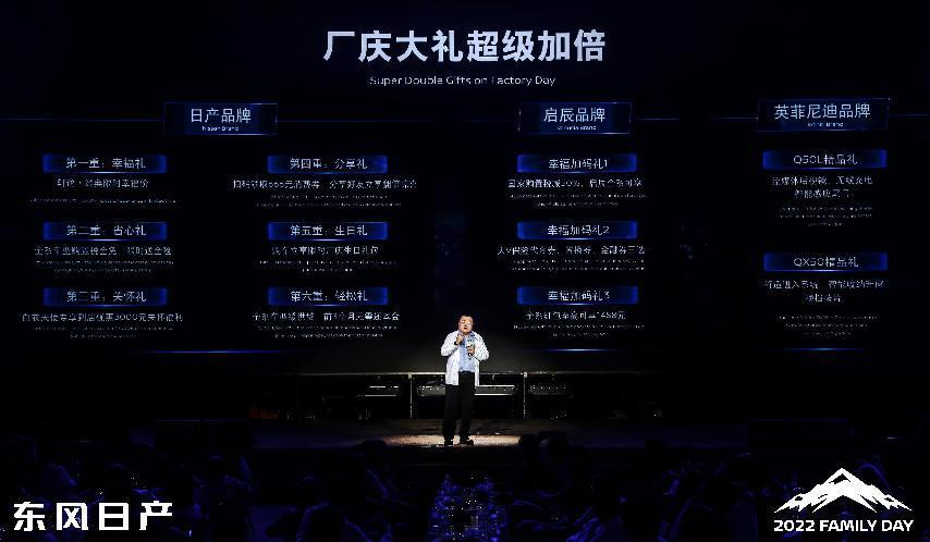 东风日产2022 FAMILY DAY的精彩与惊喜当然不止于此。在这个属于东风日产与千万车主共同的节日,自然不会少了车主福利。此前,国家发布购置税减半征收政策时,东风日产就已率先加码,对部分车型购置税全免,大力回馈消费者。活动当天,东风日产更显诚意满满,带来三品牌多重优惠福利,把家的温情落到实处。