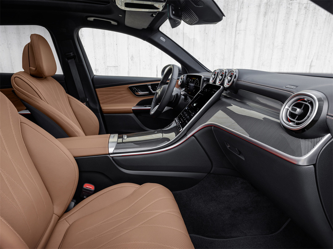 新车最大的亮点莫过于是它的内饰设计,沿用新奔驰C级的内饰布局,配有熟悉的全液晶仪表盘、中控触摸屏、三幅式多功能方向盘、炮筒式空调出风口以及大面积的仿碳纤维面板,看齐奔驰S级的设计,讨得年轻消费者欢喜。