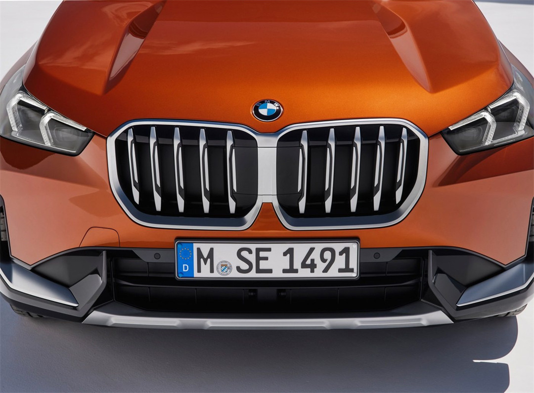 此次宝马X1在外观上做出了较大的改动,标志性的双肾进气格栅设计尺寸进一步增大,配备双倒“L”字型的LED日行灯,精致感提升不少。而下包围更是棱角分明,细节之处带有银色的饰条所点缀,看起来更加的硬朗。
