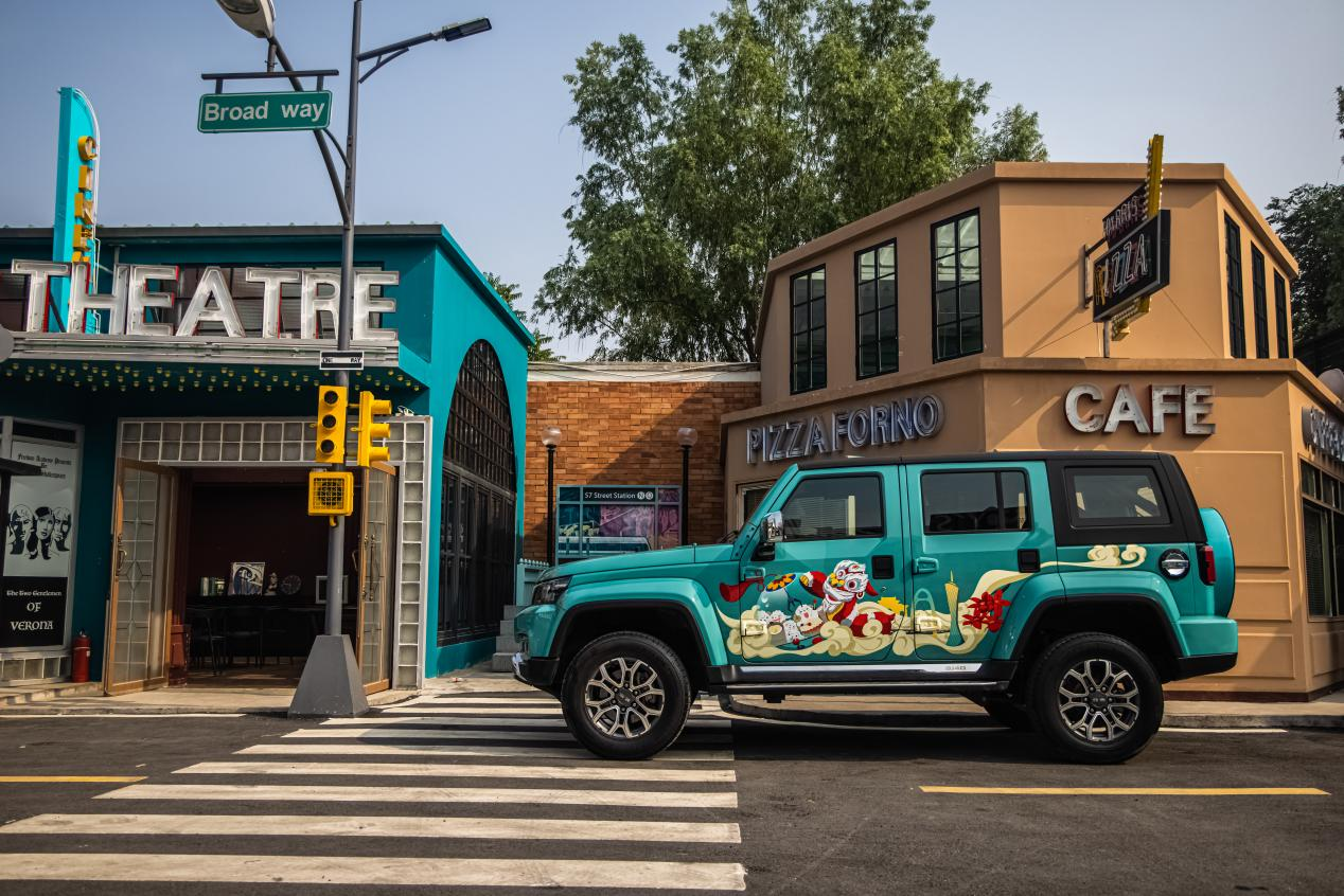 身披“醒狮”国潮皮肤的BJ40在城市中穿梭,仿佛见证了广州这座城千年拼搏的历程与发展,积淀深厚,然而车身绘制特有的广州文化元素,又给人个性新潮之感,堪称当代潮酷青年的最佳配备。