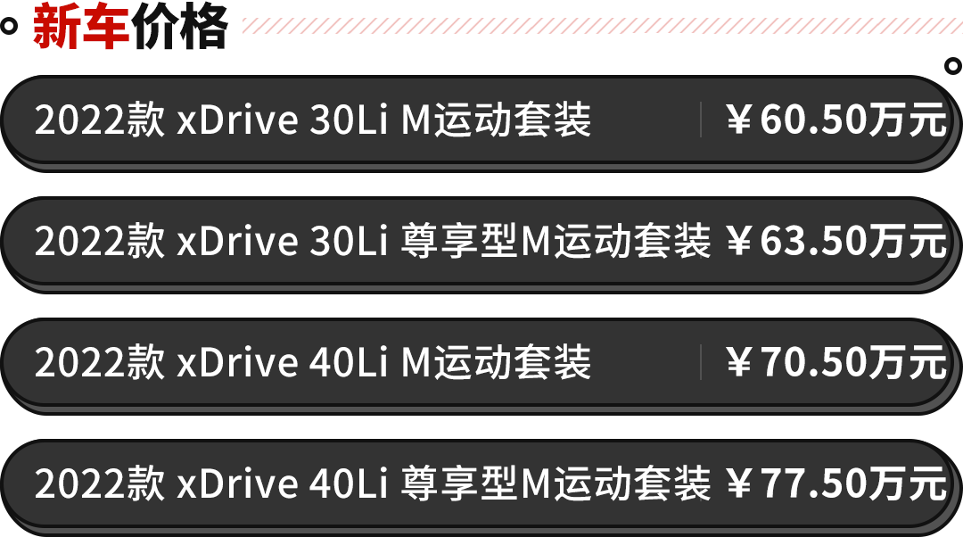 当然,如果你就是差这3万元,且对于以上配置不在乎,就想着花一个最低的价钱购买国产宝马X5,那就考虑入门版车型。配置也并不差,像驾驶辅助系统、可转向比、可开启全景天窗、运动外观套件、电动感应后备箱、全车无钥匙进入、手机无线充电、座椅加热、12扬声器哈曼卡顿音响、多色氛围灯、后排空调出风口等都是标配。