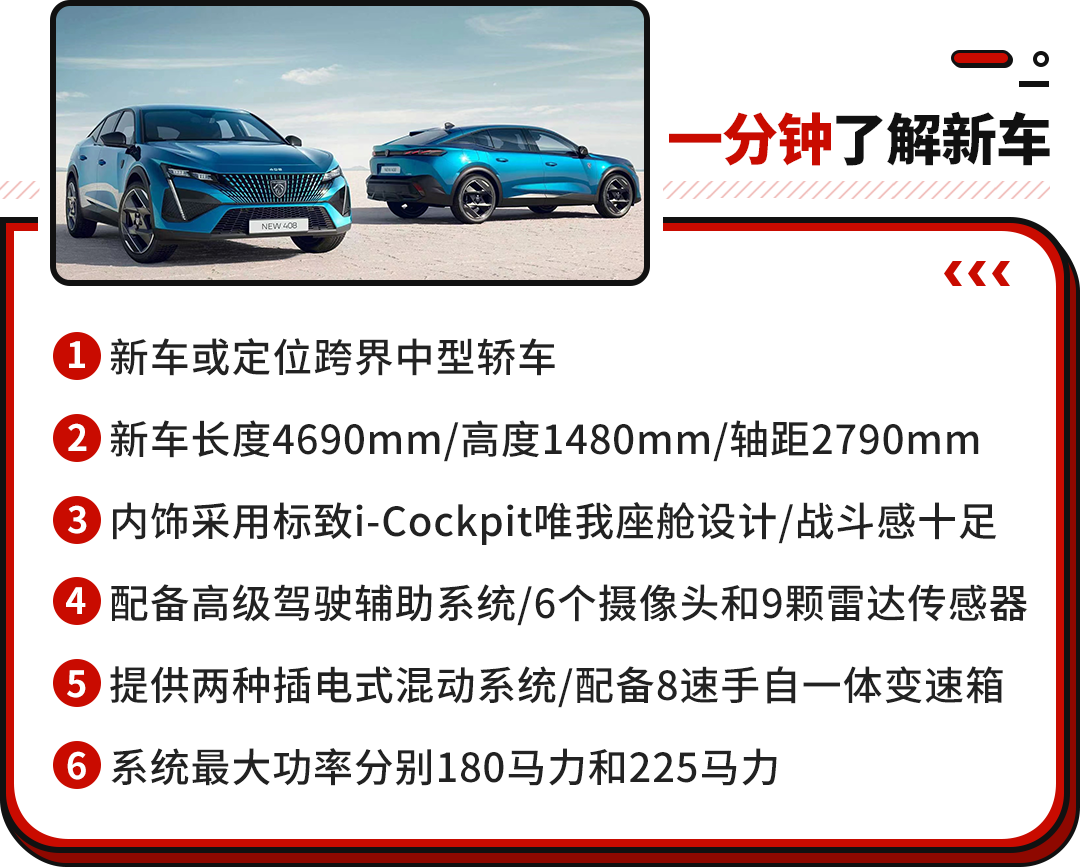 与此同时,标致汽车官方还发布了海外新一代标致408,不同于国内已亮相的标致408,该车将定位于一款跨界中型轿车,并而采用了溜背式设计,与雪铁龙凡尔赛C5 X处于同一种风格,且颜值更高。据了解,新车计划于2023年年初在全球范围内上市,未来新车还将中国成都工厂生产,并命名为标致408X。
