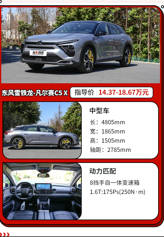 像雪铁龙在去年推出凡尔赛C5 X,定位中型轿车的它,起售价仅14.37万元,同时全系标配1.6T+8AT,配置也称得上入门即高配,加上跨界风格的造型,一经上市就受到了不少消费者的追捧,连续三个月销量破4000台,成为了雪铁龙旗下最畅销的车型。