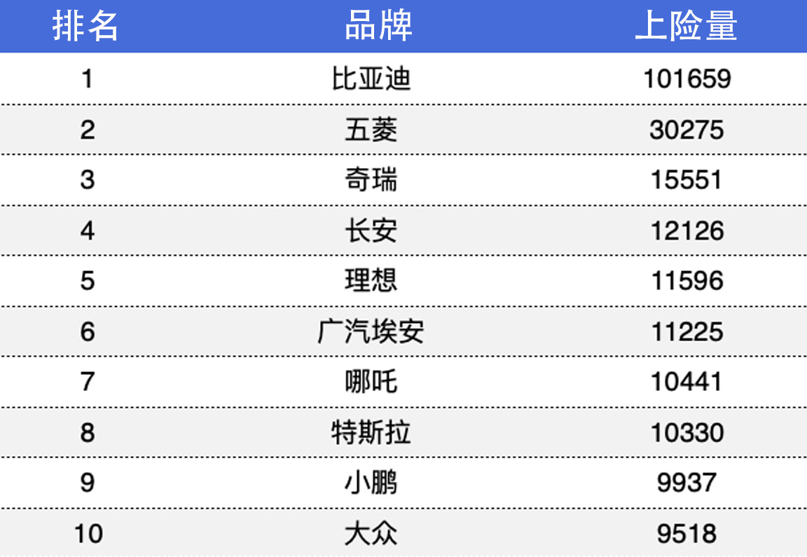 品牌上险量的结果其实就已经很明显,NO.1当然就是比亚迪的了,光超10.1万辆的成绩就甩开了2、3名好几条街,超群的产品实力满足了老百姓代步、省油的硬刚需。