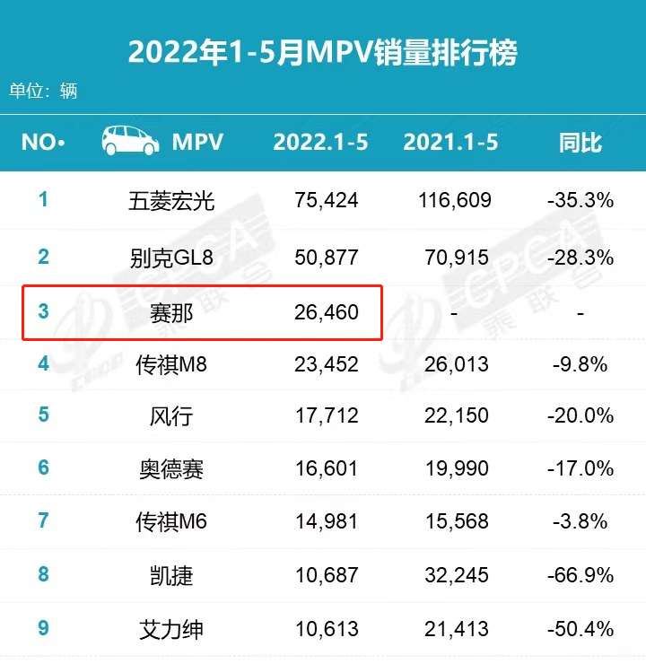 直到后来产能上来,以及平价销售后,赛那就像一匹脱缰的野马,一路狂奔,销量节节上涨。丰田赛那今年1-5月累计26,460辆,平均月销超5000辆,同级别仅次于别克GL8,且差距正在缩小,将来有望超过别克GL8,成为中大型MPV新的标杆。