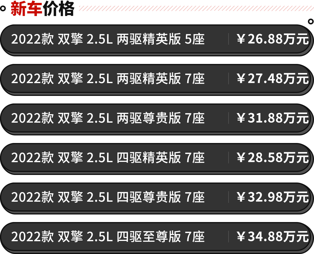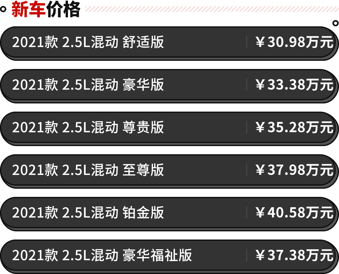 目前全新一代汉兰达共计6款车型,售价区间26.88-34.88万元,其中指导价为32.98万元的四驱尊贵版最受欢迎,其次是两驱尊贵版,指导价为31.88万元。它们差价1.1万元,主要多了一套电动四驱,说实话还挺值,能提升车辆的通过性和操控性。