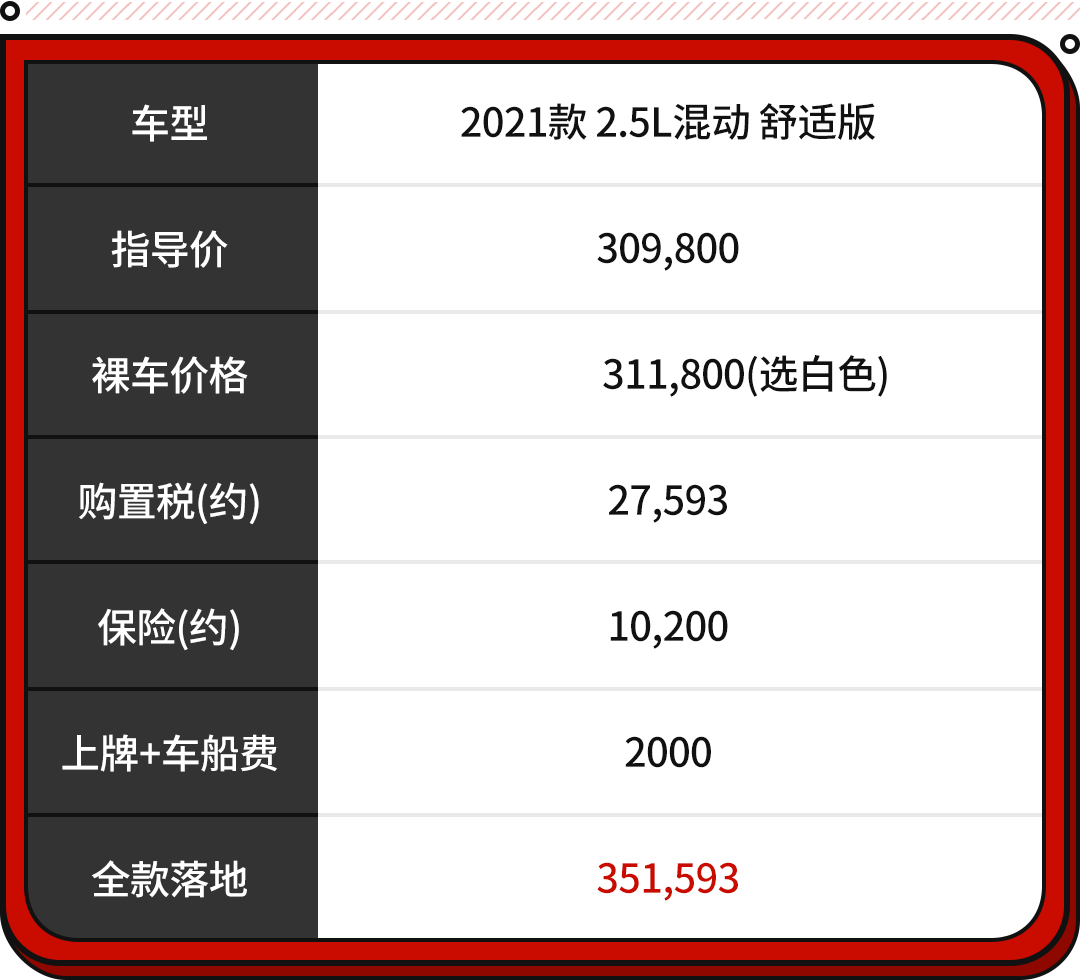 落地价方面,入门版车型指导价为30.98万元,暂无优惠,如选择珍珠白车漆需加2000元,购置税27,593元,商业保险+交强险10,200元,上牌费+车船使用费2000元,全款落地35.16万元左右。如分期贷款购车,以首付30%分期三年来算,首付13.28万元,每月还款6517元,仅供参考。