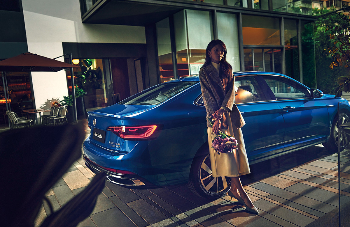 前脸部分采用中网矩阵进气格栅,格栅内部采用横向镀铬装饰进行点缀,与上方银色镀铬饰条融为一体,使得新车确实有点“小帕萨特”那味了。矩阵式大灯组也进行了优化,灯组内部置有“U”字型的LED日间行车灯带,点亮后辨识度更高。