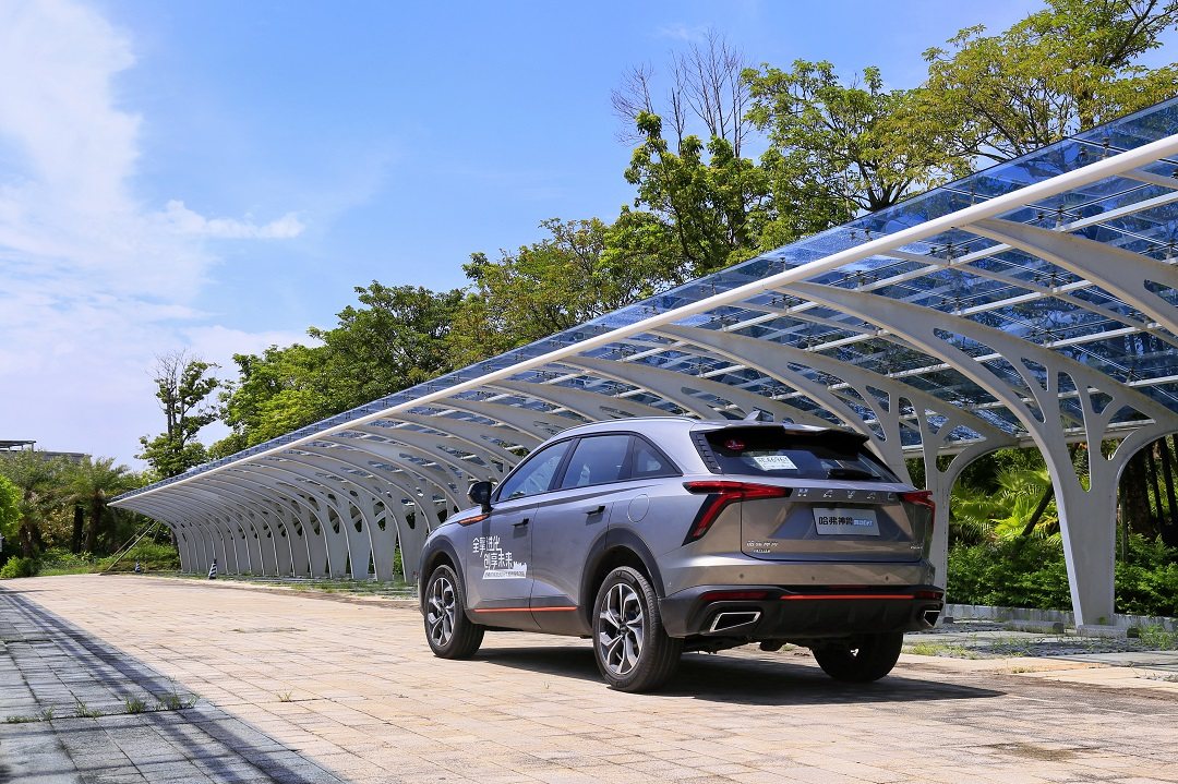 而形似宇宙战机的双尾翼造型还有γ射线尾灯等元素融入的点缀也衬托出哈弗神兽DHT版本智能运动的气质。