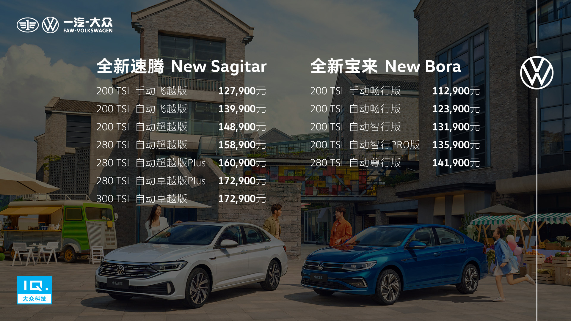 作为超过700万用户的至臻之选,全新速腾与全新宝来是一汽-大众践行“价格-价值”战略的代表车型,为用户带来产品增值、拥车保值和体验升值的超值感受,让用户的每一分价格都物超所值。本次发布会,一汽-大众全新速腾和全新宝来在内外造型、动力总成、智能科技和舒适安全等维度全面焕新;同时,双车引入了大众集团最新的大众IQ.科技,凝聚了大众最先进、最具竞争力的智能科技。大众IQ.科技结合了大众的前瞻科技智慧和人性美学,从驾驶、泊车、智慧互联和灯光科技等维度,全面提升用户用车体验,为“国民家轿双雄”引领国内A级、A+轿车细分市场夯实了坚实基础,诠释了双车高品质国民家轿的标杆形象。