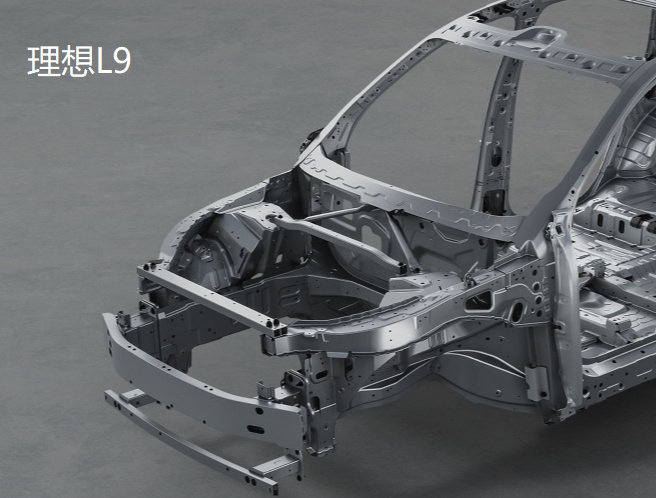 相对于纯电动车型,增程式混合动力车型的用料不会那么下本,高强度钢依然是最主要的车身组成材料。作为一款增程式混合动力车型,理想L9不需要容量太大的电池,所以其车身用料以钢为主也不奇怪。