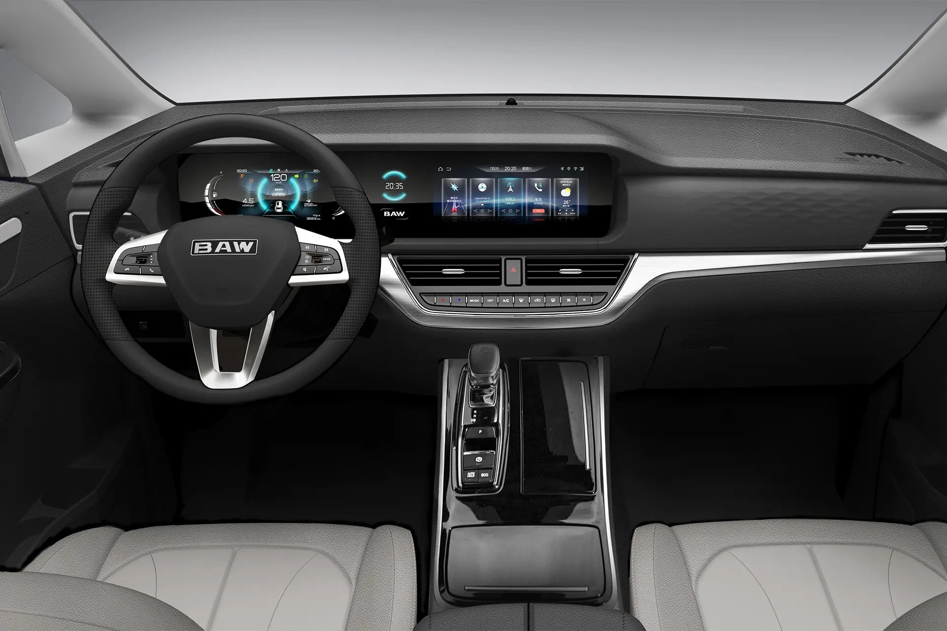 内饰为当下最为主流,由液晶仪表盘和中控屏组成的双连一体大屏设计,不过其并非做悬浮式处理,而是嵌入式布局。至于好不好看,就见仁见智了。与此同时,其也配备有三幅式多功能方向盘以及样式精致的挡把,进一步提升整车品质感。