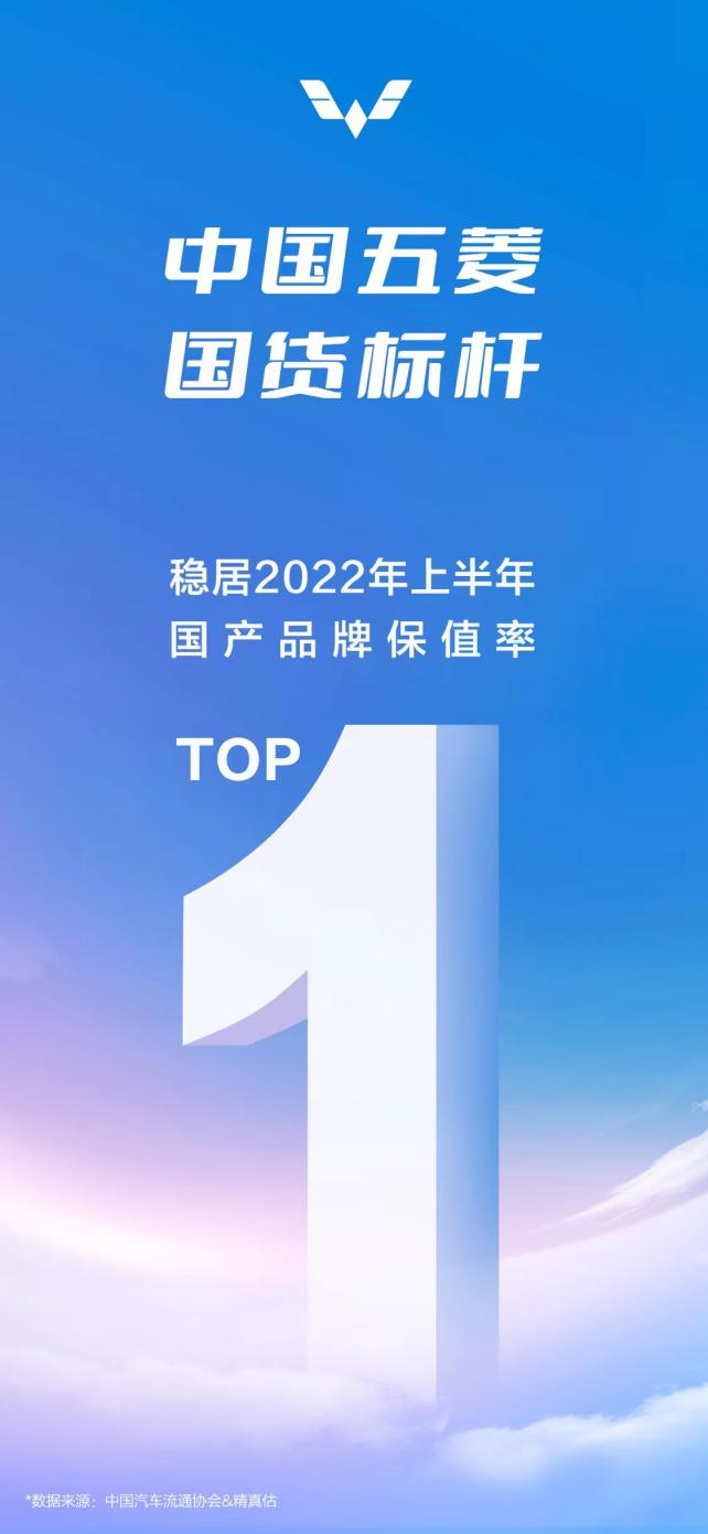 2022年,在中国汽车流通协会与精真估1-6月发布汽车保值率报告中,五菱汽车连续6个月蝉联自主品牌保值率第一名。在中国国际贸易促进委员会汽车行业分会与业内媒体合作发布的《中国汽车保值率排行榜》中,宏光MINIEV以75.92%的一年保值率荣登纯电动汽车保值率榜首。