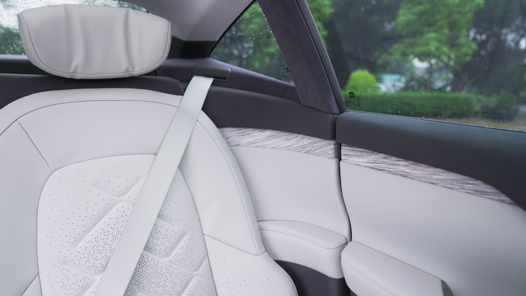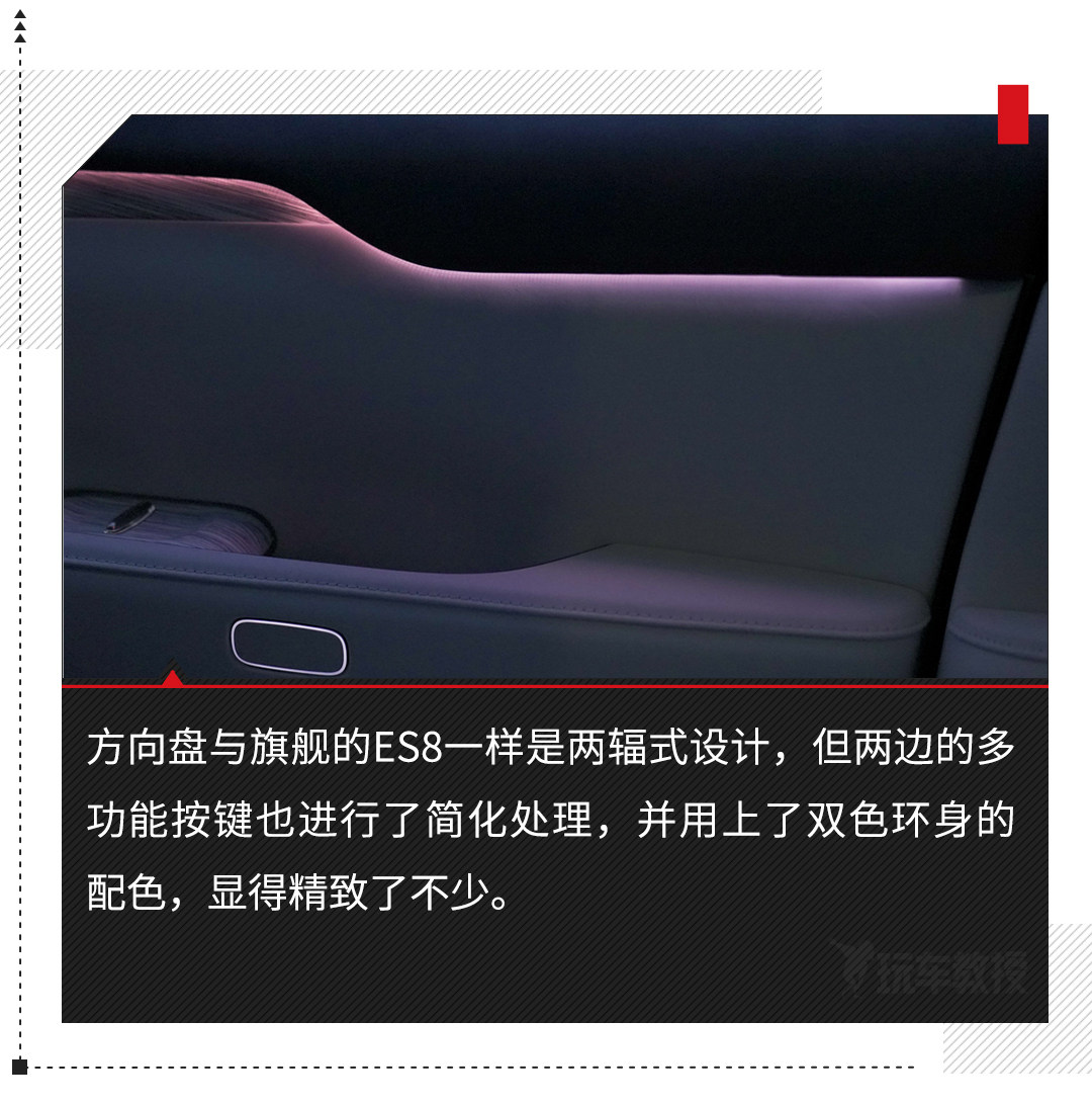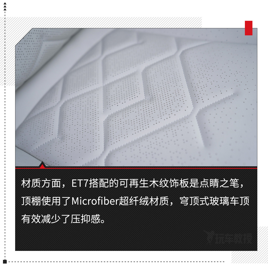 虽然ET7的内饰设计看起来与前作都大有不同,但其实还是以家族化的那套设计风格为基础,然后在细节上做了更多极简化的处理。在配色上提供了3种选择,以黑色为基础可以搭配阿尔卑斯灰、雪绒白、金沙米。这台首发版就是主打的黑/阿尔卑斯灰配色。