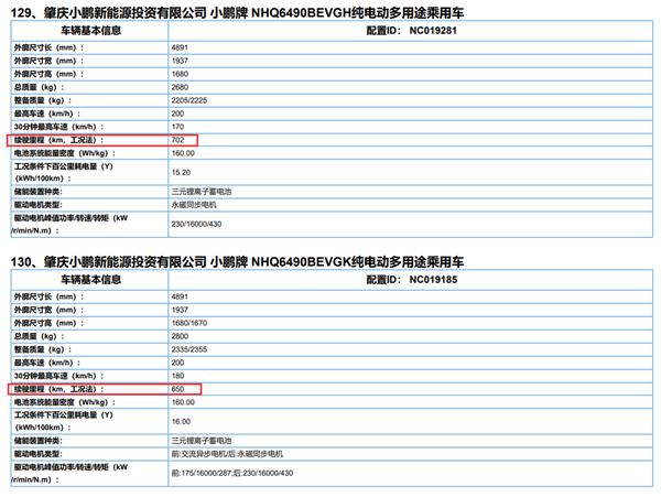 同时,还可见,小鹏G9无论是后驱和四驱车型版本都将匹配一块容量为98kWh的三元锂电池组,相对应最大续航里程可达702km(单电机),650km(双电机)。