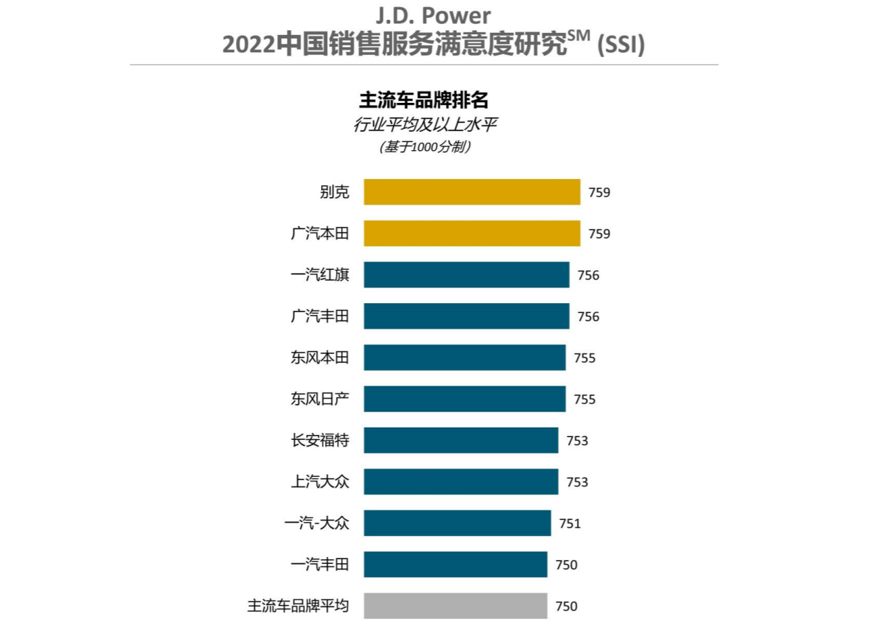 作为目前国内市场最吃香、最大的美系品牌,别克同样拥有着令消费者满意度较高的销售服务,从今年的研究报告可以看出,别克品牌的销售服务满意度从去年的744分提升至759分,与广汽本田共同蝉联主流车细分市场满意度派行榜单NO.1。