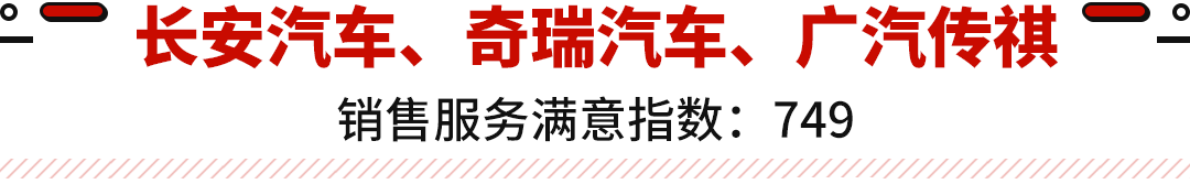 以749分的销售服务满意度位列主流车细分市场第二的,分别有长安汽车、奇瑞汽车以及广汽传祺。作为国内一线自主品牌,近两年,长安汽车、奇瑞汽车以及广汽传祺无论是产品力还是销量额都表现得非常抢眼。