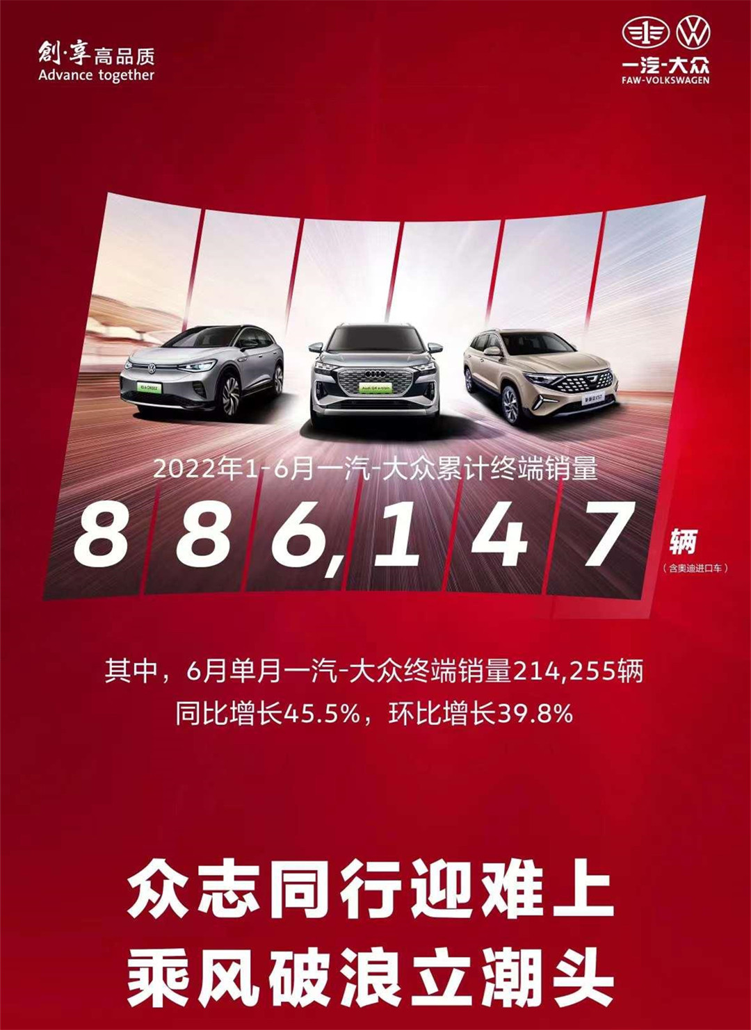 广汽丰田上半年的累计销量同比增长19.9%,其实比大众这个单一品牌要多一些。其中6月销量达100866辆,同比增长37.8%,创下了单月和上半年销量的历史新高。