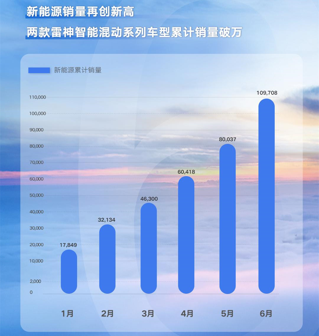 6月份,吉利销售的新能源车渗透率达到了23.4%,为29671辆,环比涨超51%。其中两款雷神混动车型累计销售了12556辆,同月环比大涨超过了161%。