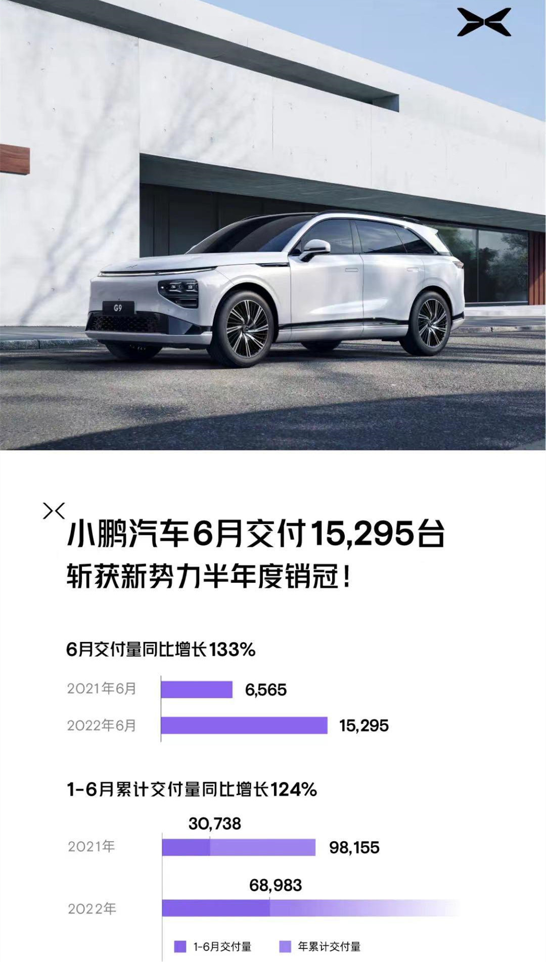 第二季度累计交付了34,422台,其中P7交付8,045台、P5交付5,598台、G3系列交付1,652台。接下来就看加上即将推出的旗舰SUV G9,小鹏能否冲击年度销量冠军了。