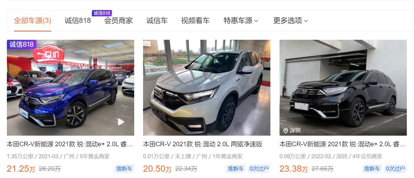 而在国内市场上,本田CR-V拥有着宽敞的车内空间和良好的市场口碑,使得它在二手车市场上十分保值,两年车况的CR-V保值率基本在77%以上,甚至有些里程少的,售价只比新车少了个购置税,由此可见这款车在二手车市场深受大家青睐。