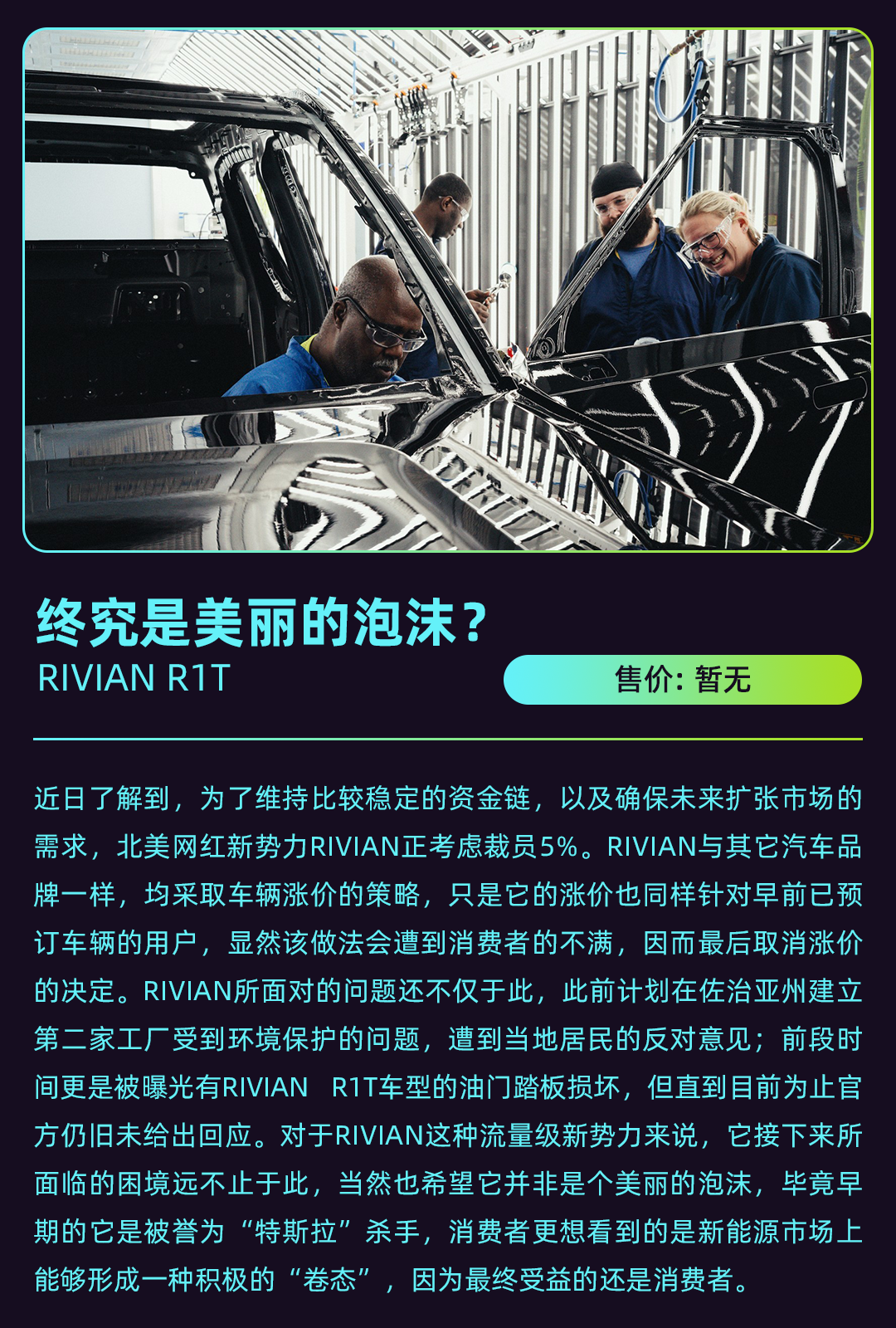 一周车讯快报为您搜罗车圈新鲜事,这里不单单只有新车首发/上市/预售信息,更是有国内外新奇好玩的汽车见闻,让大家对新车有更多元、更深入的了解。北美网红新势力或将裁员5%、本田思域Type R官图泄露、极氪001官方免费升级8155芯片、宝马部分配置开启租赁模式。