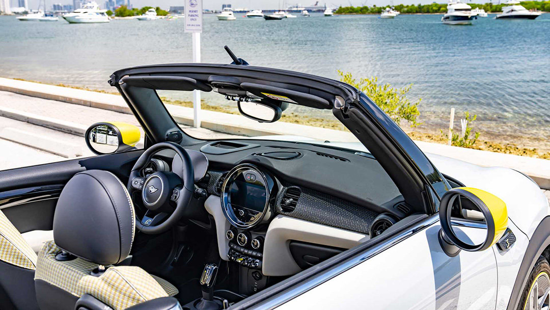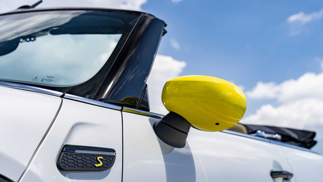 新车采用现款MINI车型的软顶设计,根据资料显示,在30km/h的时速下,开关棚的动作能在18秒内完成,而且开棚后和MINI系列一样都是拥有英国米字旗的图案。